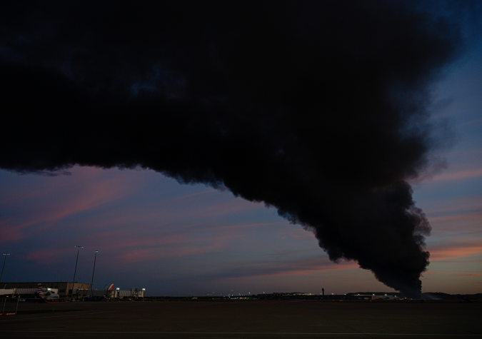 Las autoridades pidieron a la población mantenerse alejada del área y decretaron una orden de confinamiento en un radio de 8 kilómetros alrededor del aeropuerto debido a los riesgos por el fuego y los escombros.