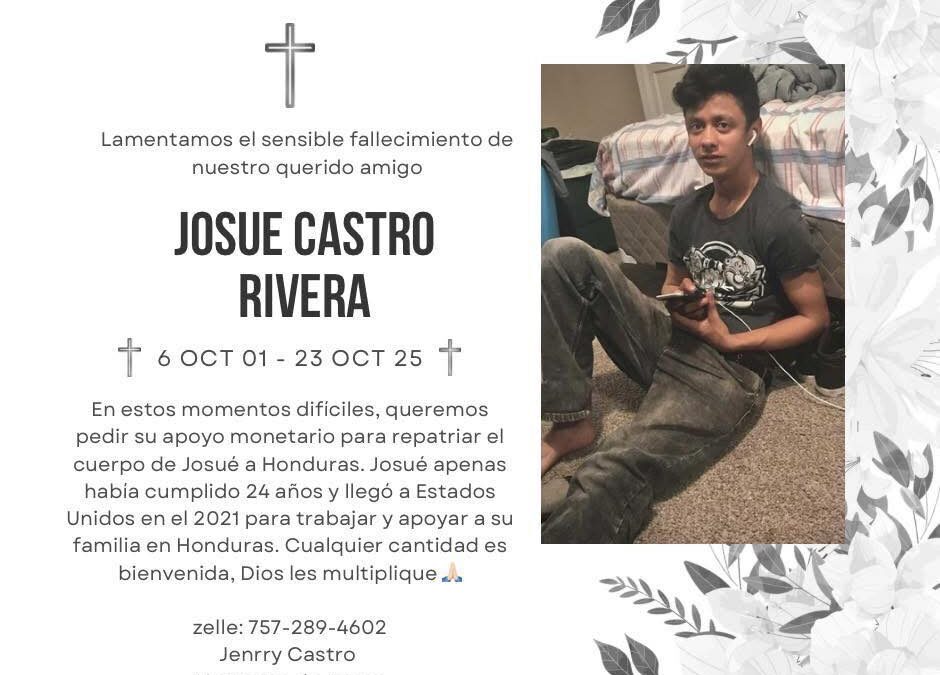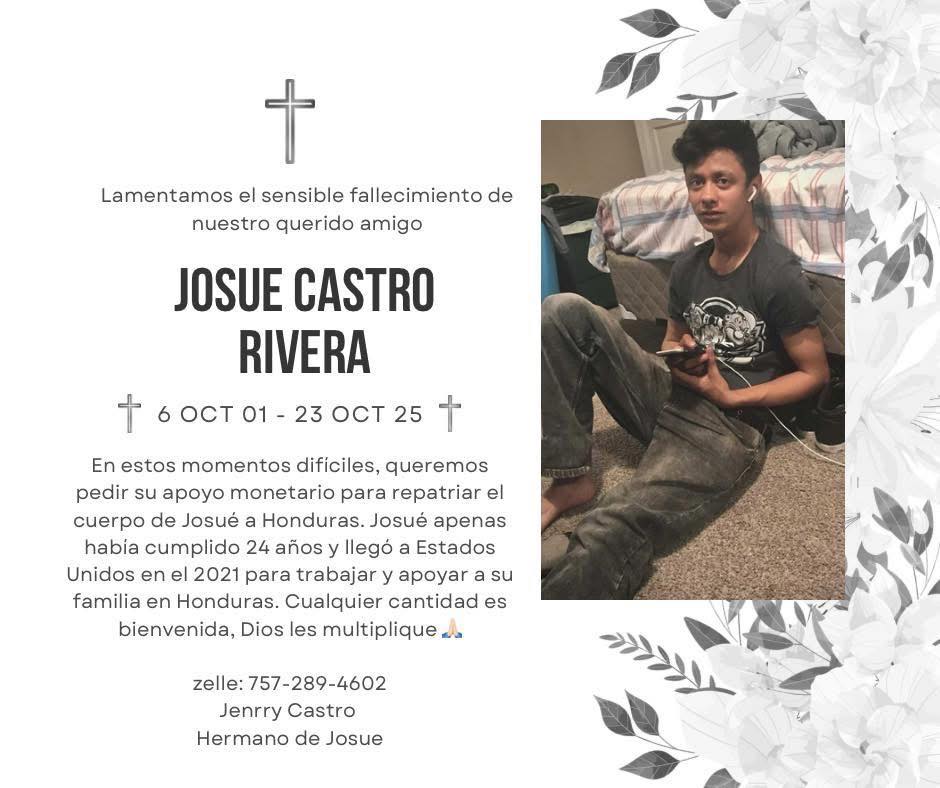 El Departamento de Seguridad Nacional (DHS) y el Servicio de Inmigración y Control de Aduanas (ICE) confirmaron que el joven hondureño Josué Castro Rivera, de 24 años, fue la persona que perdió la vida el pasado 23 de octubre tras ser atropellado mientras huía de una operación migratoria en la autopista I-264 de Norfolk, Virginia.